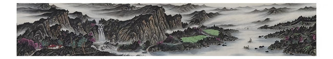 北京城的地铁站台,喧嚣永远是常态,然而那幅长卷画作《长白山下我的家》,却让许多人停下了脚步,凝神静息,驻足观看。初见吴长逯先生笔下的雄浑长白山,我便觉那纸页间不是墨色的堆砌,而是将长白山魂硬生生地拉到人们眼前,那银雪覆岭,群峰直刺天穹;那林海如涛,连绵浩瀚翻涌;那银瀑飞流,万古奔流不息,这一切,把长白山的雄浑苍茫还原得那般生动,甚至让人感觉身边的风都涌起长白山的凛冽。